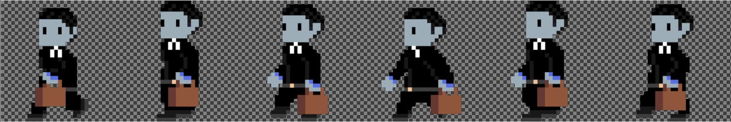Now, you might think that'd be it but no. My partner was doing the art and after they did an amazing job with the pixel art days earlier and finally the enemy one not long after, I implemented them. Then the worst that could happen, happened. The game fucking broke. The enemies wouldn't play their hit animation, they would get stuck in the floor, they would not die even though they took their damage, the character would freeze randomly when attacking causing you to having to reset the game (I added a quick reset button in the pause menu to accommodate for that).