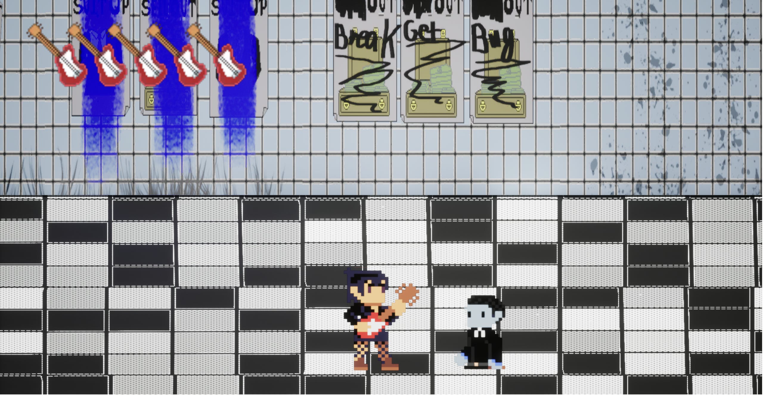 At first I was wanting to make a boomer shooter because I've been wanting to make one of those for a while, but then we settled on something much simpler, a 2D beat 'em up, ala Streets of Rage but instead of your fists you would use a guitar.